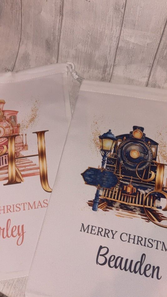 Personalised Express Train Christmas Eve Bag - Linen/White Bag