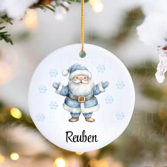 Personalised Christmas Ceramic Ornament - Pink/Blue Santa Design