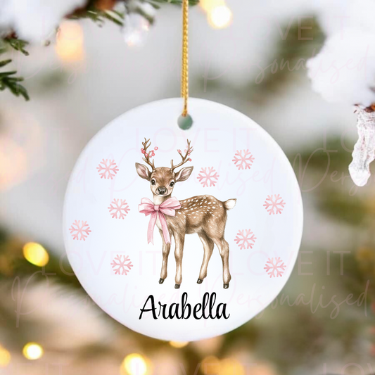 Personalised Christmas Ceramic Ornament - Pink/Blue Reindeer Design