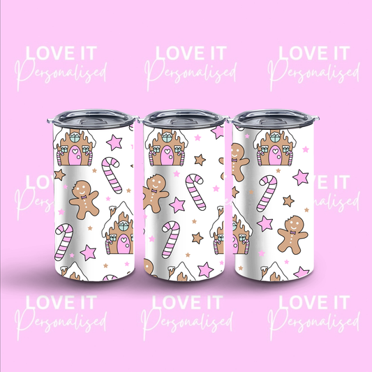 Pink Gingerbread House 12/20oz Christmas Tumbler