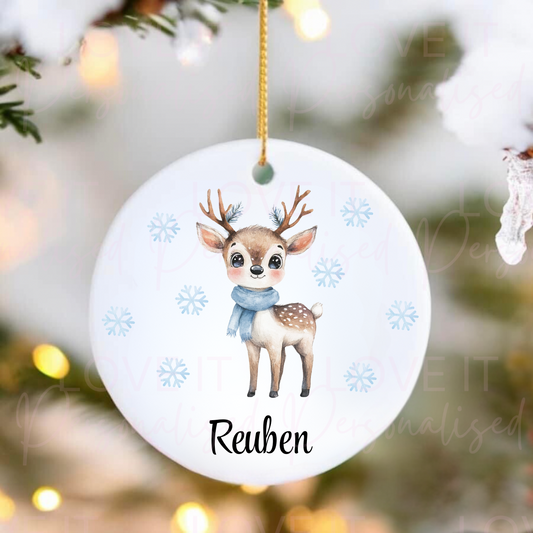 Personalised Christmas Ceramic Ornament - Pink/Blue Baby Reindeer Design