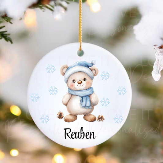 Personalised Christmas Ceramic Ornament - Pink/Blue Bear Design