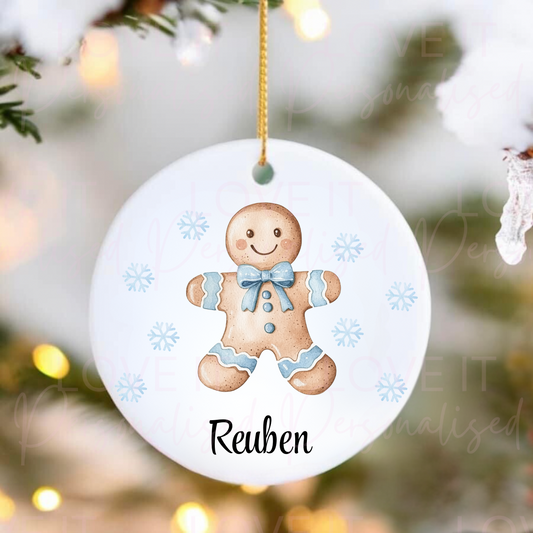 Personalised Christmas Ceramic Ornament - Pink/Blue Gingerbread Design
