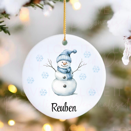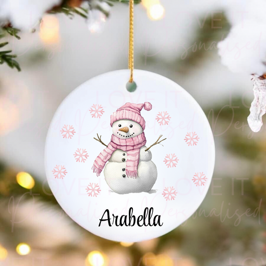 Personalised Christmas Ceramic Ornament - Pink/Blue Snowman Design