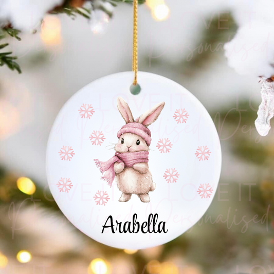 Personalised Christmas Ceramic Ornament - Pink/Blue Rabbit Design