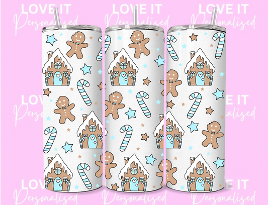 Blue Gingerbread House 12/20oz Christmas Tumbler