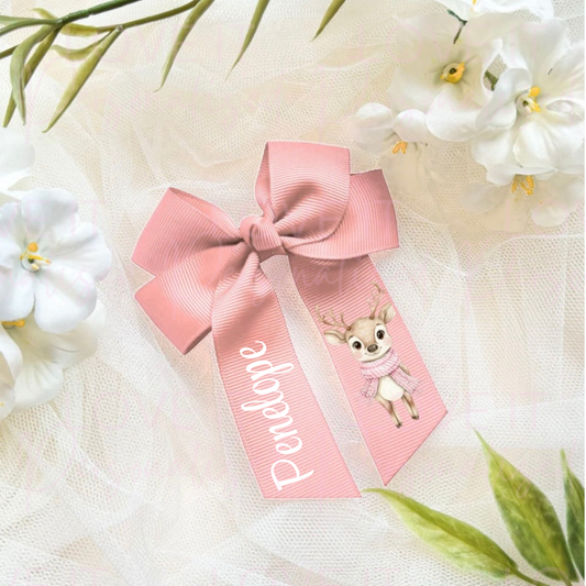 Personalised Christmas Hair Bow - Pink/Red Reindeer