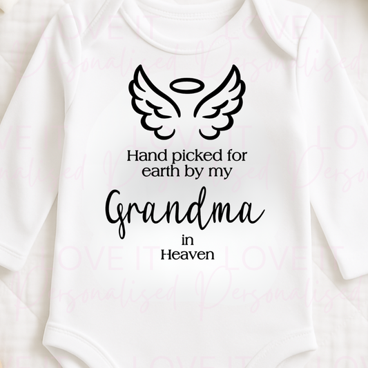 ‘Hand picked for earth by my Grandma’ Baby Bodysuit