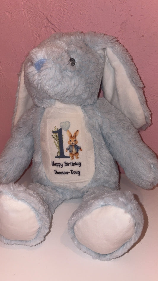 Personalised Birthday Bunny Teddy - Blue/Beige Bunny Boy Number Design