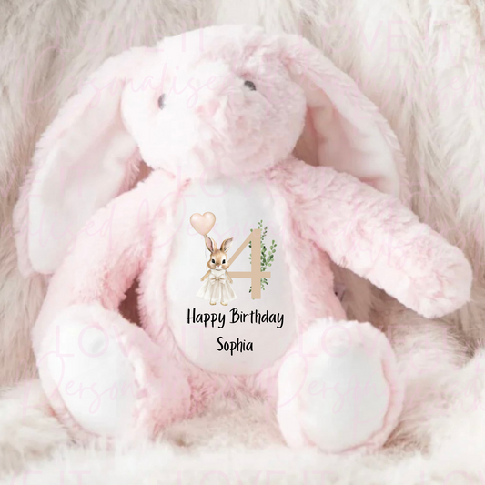 Personalised Birthday Bunny Teddy - Pink/Beige Bunny Girl Number Design