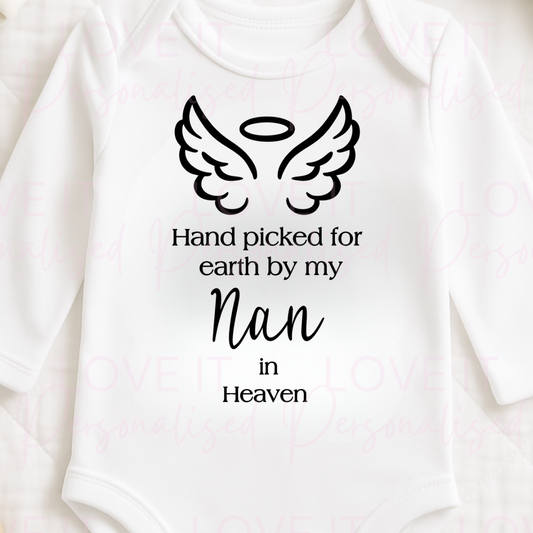 ‘Hand picked for earth by my Nan’ Baby Bodysuit