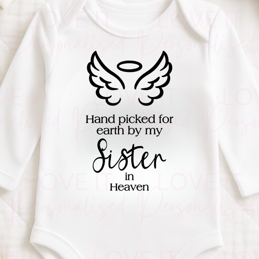 ‘Hand picked for earth by my Sister’ Baby Bodysuit
