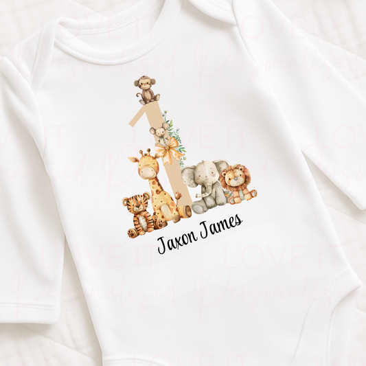 Personalised Birthday Safari Animal Outfit Baby Bodysuit/ Children's T-shirt