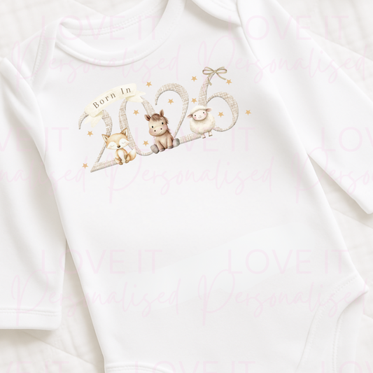 Born In 2026 Safari Animals Baby/Pregnancy Announcement Baby Bodysuit