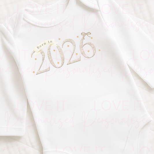 Born In 2026 Beige Baby/Pregnancy Announcement Baby Bodysuit