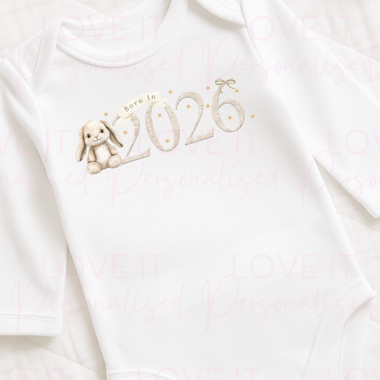 Born In 2026 Bunny Baby/Pregnancy Announcement Baby Bodysuit