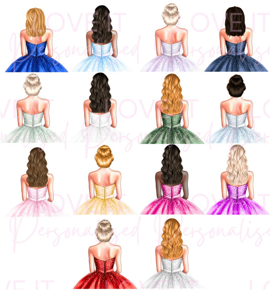 Personalised Prom Gift Bag - Changeable Dress Colours and Hair Styles