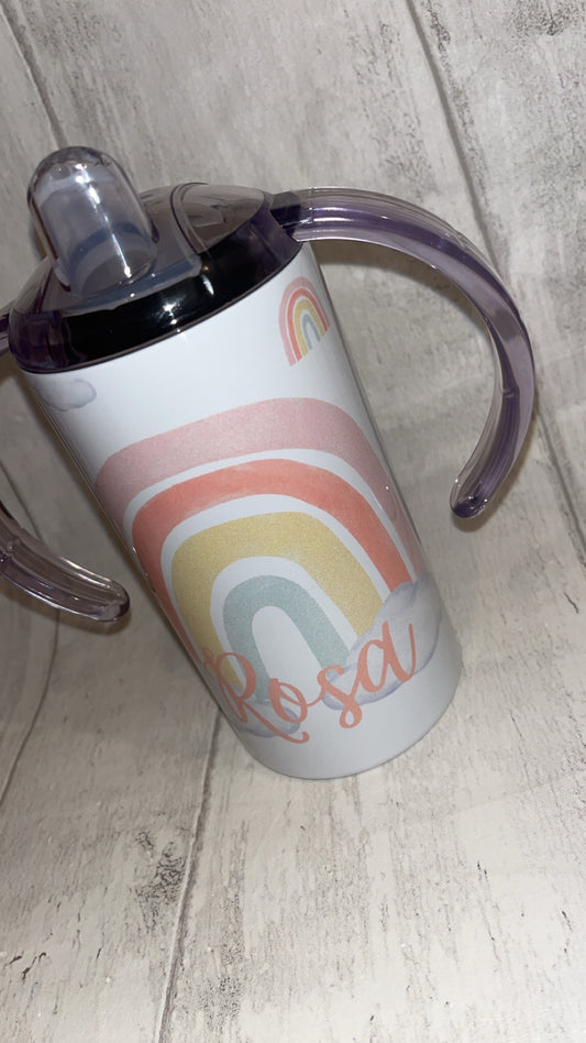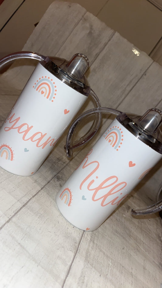 Personalised Boho Rainbow Children's Sippy Cup (two lids)