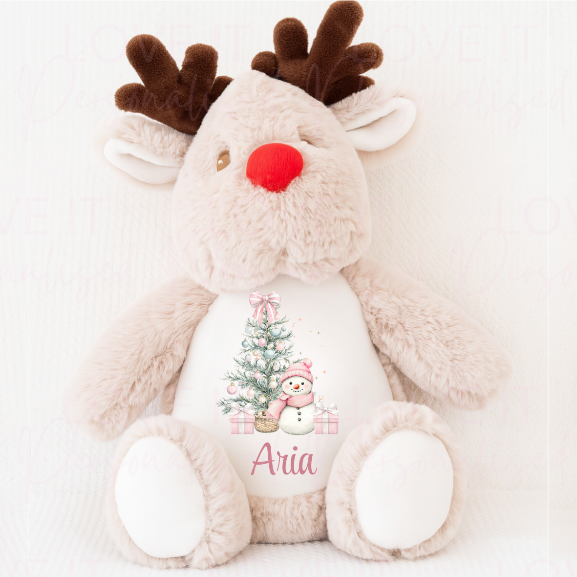 Personalised Christmas Reindeer Teddy - Pink/Blue Snowman Design
