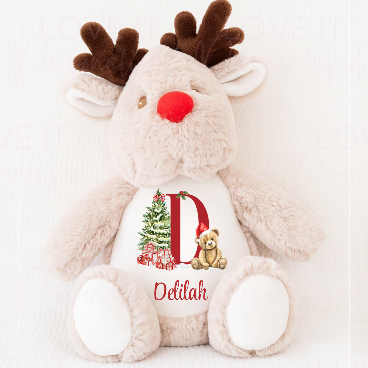 Personalised Christmas Reindeer Teddy - Bear Initial Design