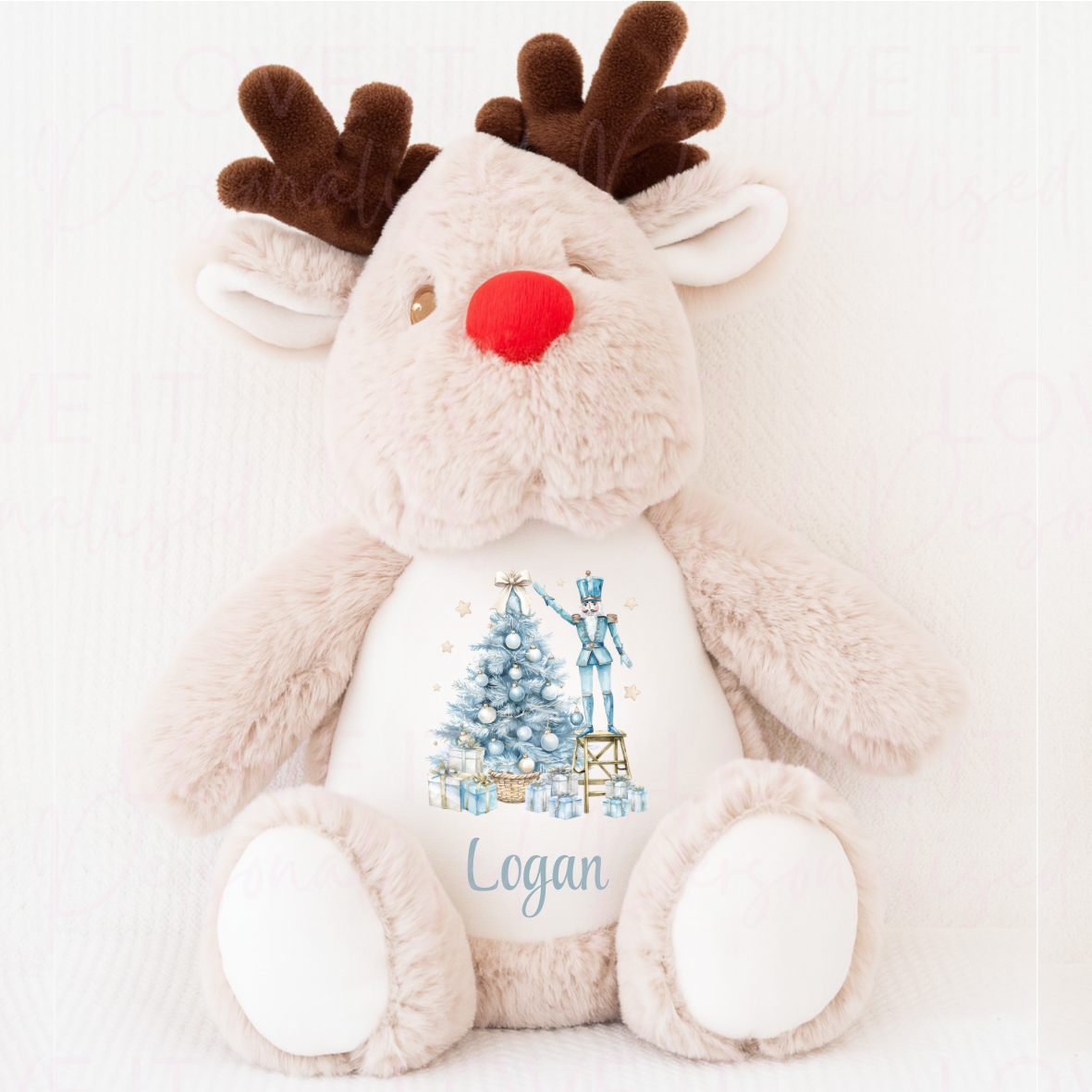 Personalised Christmas Reindeer Teddy - Blue Nutcracker Design