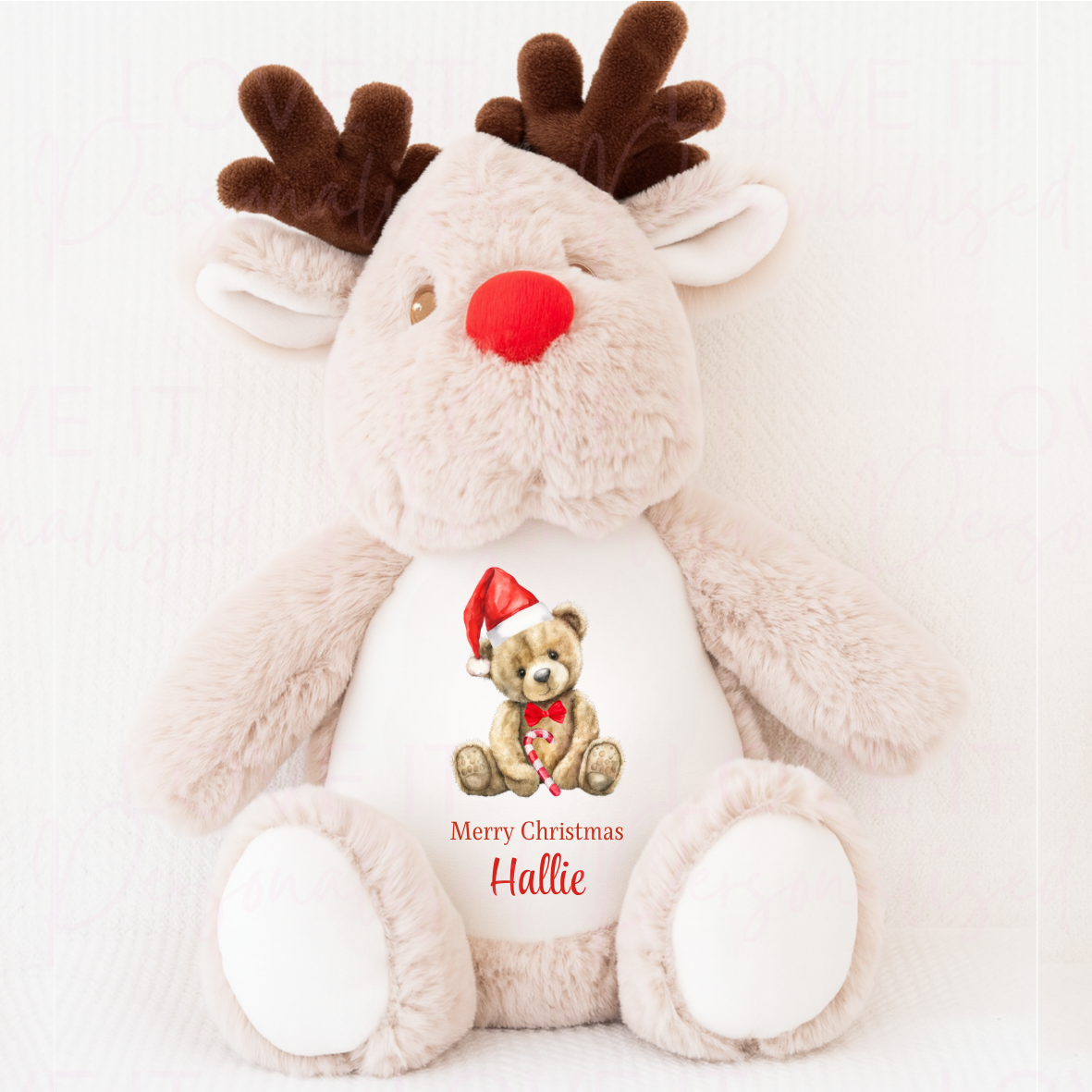 Personalised Christmas Reindeer Teddy - Bear Christmas Reindeer Design
